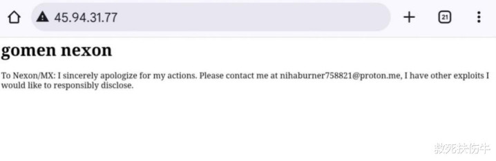 “致 Nexon/MX:我诚挚地为我的行为道歉,请通过邮箱与我联系,我还有其他漏洞希望能够负责任地告知”
